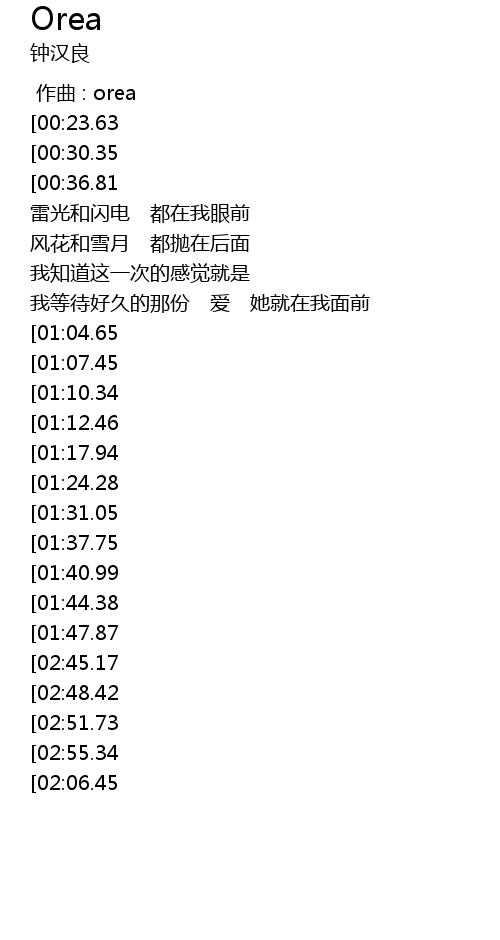 | [03:46.03][00:23.63] | OREA a EA hā qǐng gěi wǒ ài de lì liàng |
