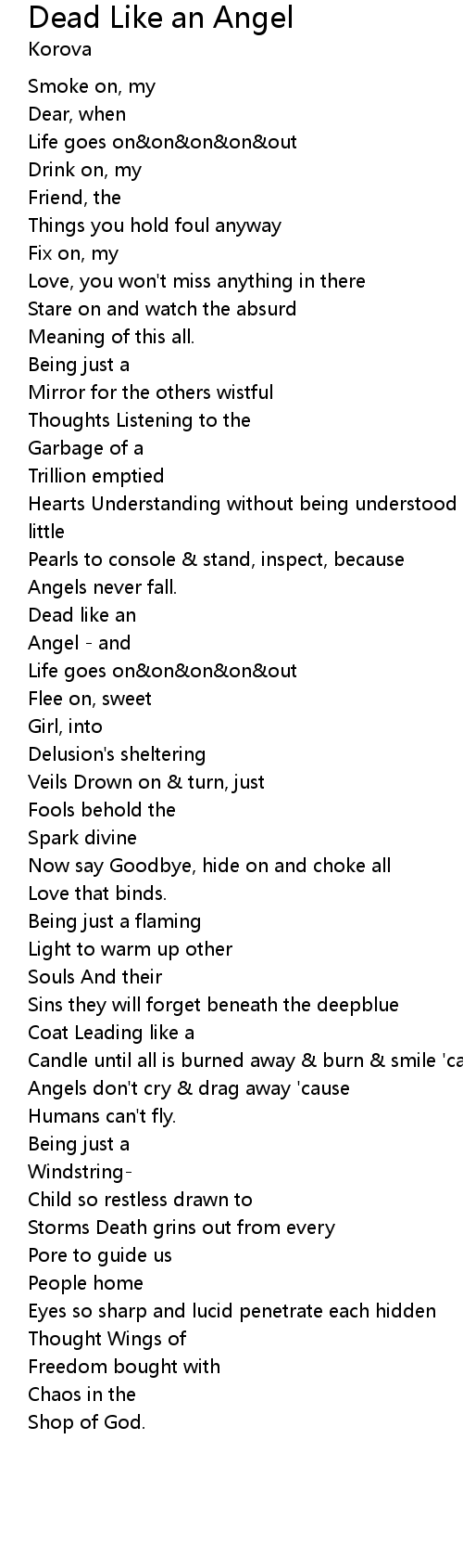 Angels don't cry & drag away 'cause |