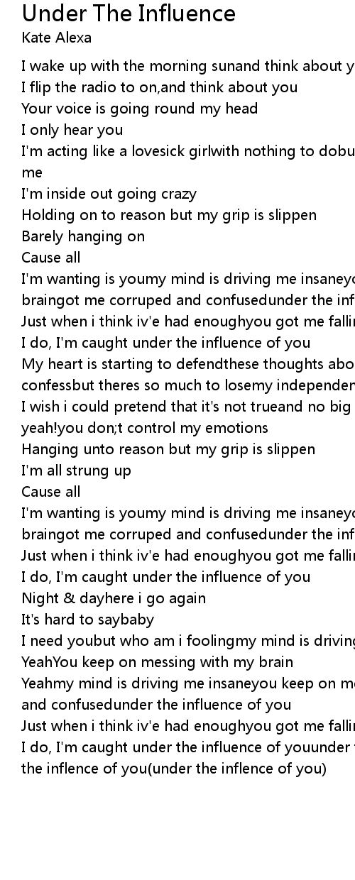 Yeahmy mind is driving me insaneyou keep on messing with my braingot me corruped and confusedunder the influence of you |