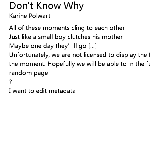 | Unfortunately, we are not licensed to display the full lyrics for this song at the moment. Hopefully we will be able to in the future. Until then, how about a | |