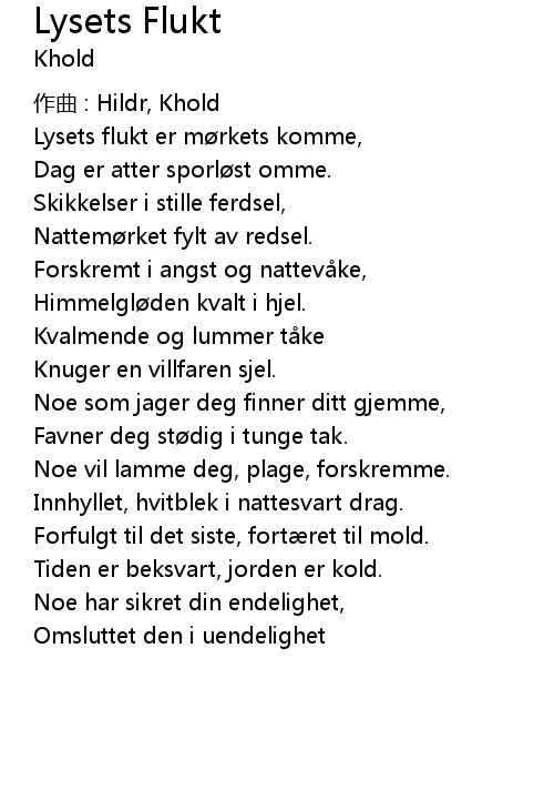 | Lysets flukt er mørkets komme, | |