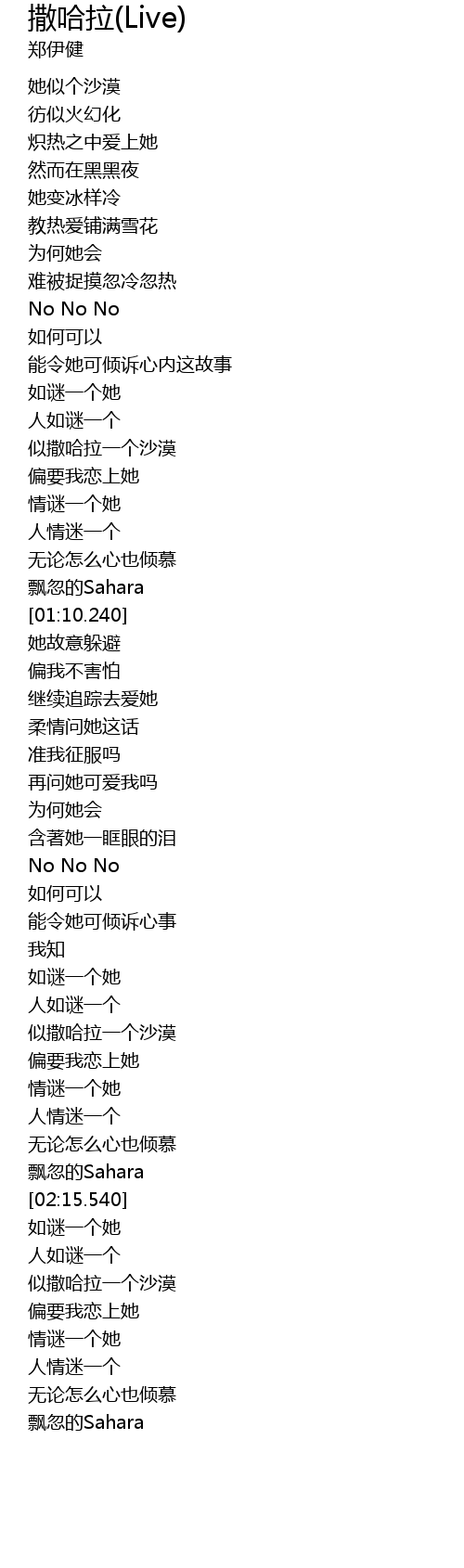 | [02:41.850] | 飘忽的Sahara |