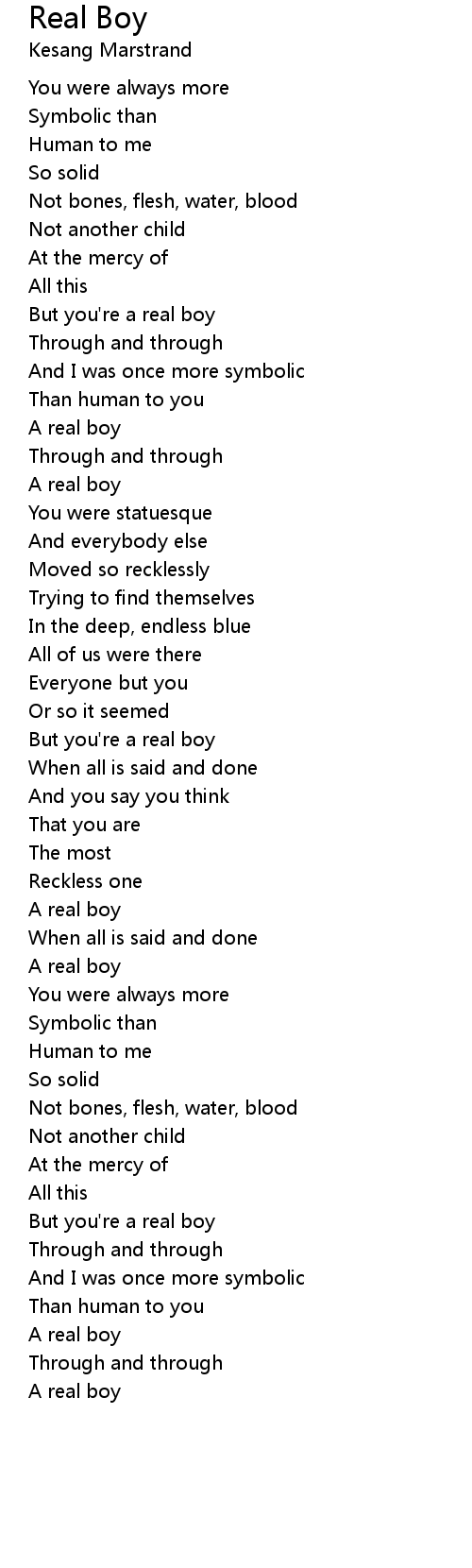 But you're a real boy |