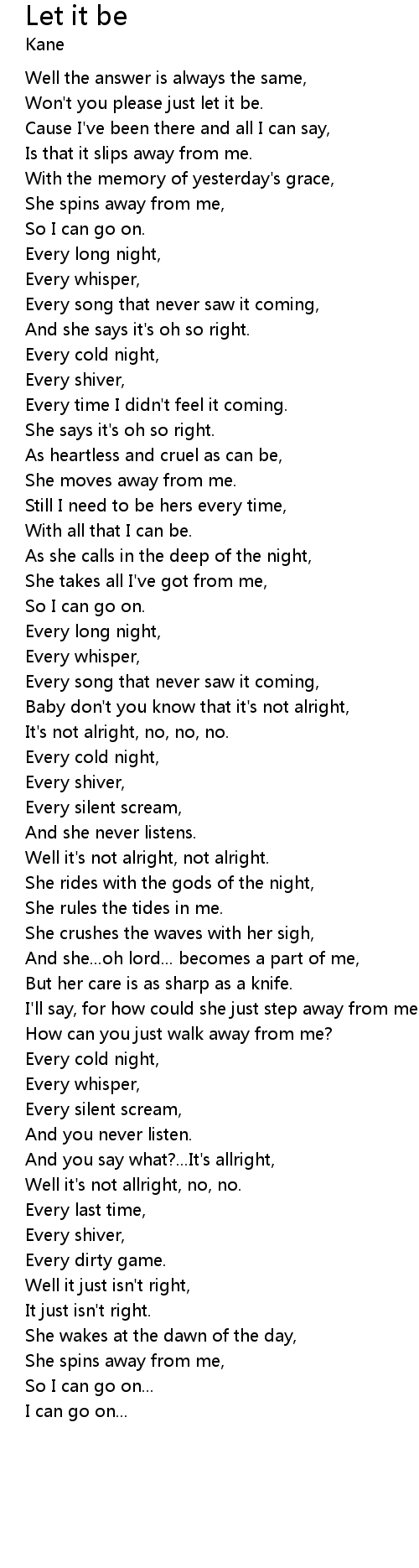 Won't you please just let it be. |