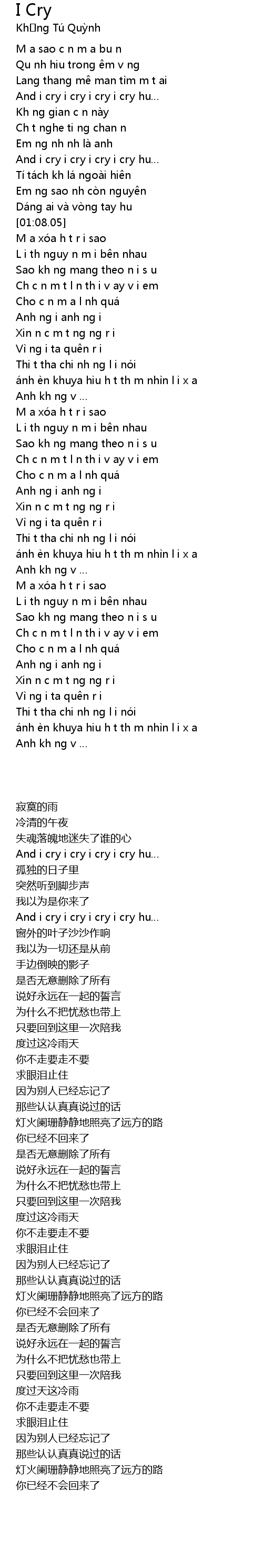 | [00:41.47] | And i cry i cry i cry i cry hu… |