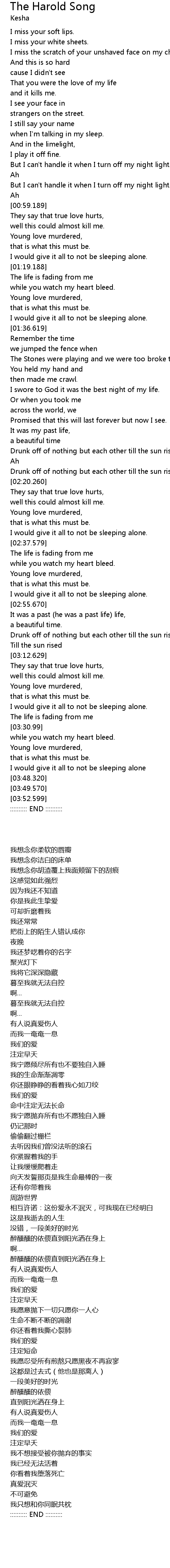 | [00:14.599] | I miss the scratch of your unshaved face on my cheek. |