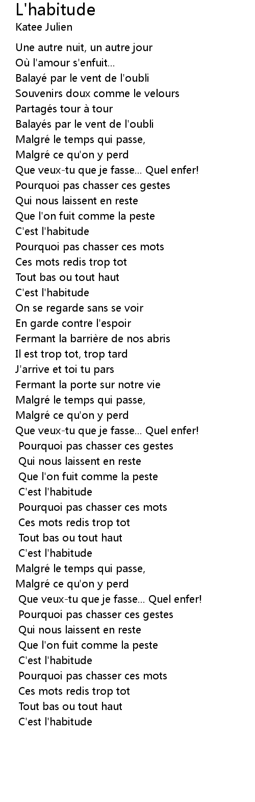 | Song | L'habitude |