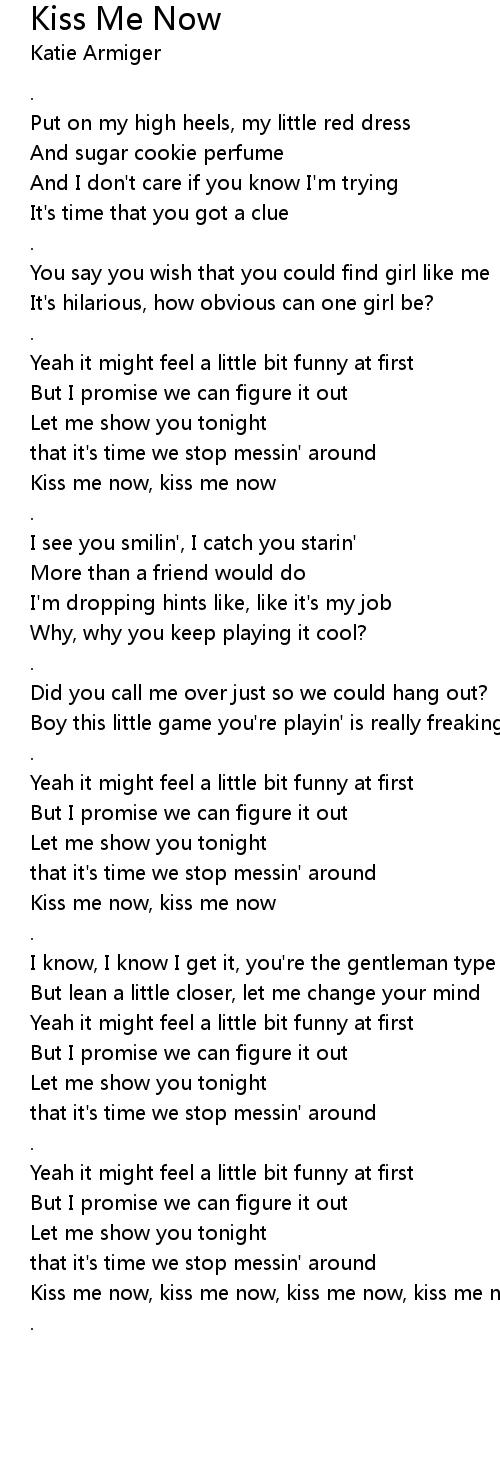 Kiss me now, kiss me now, kiss me now, kiss me now |