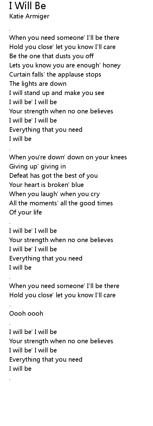 When you need someone' I'll be there |