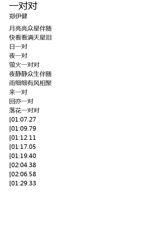 | [02:16.01][02:06.58][01:24.52] | 雪地冰天也一对 |