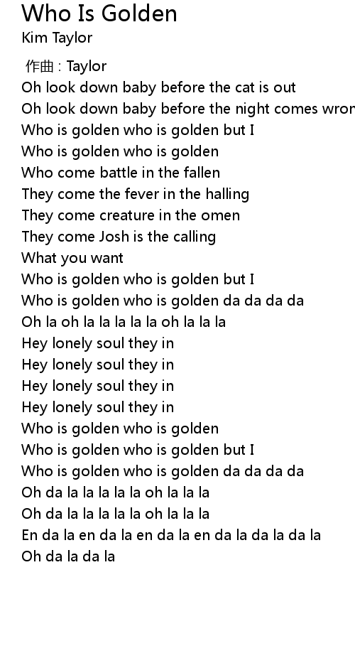 | [01:22.460] | Who is golden who is golden but I |
