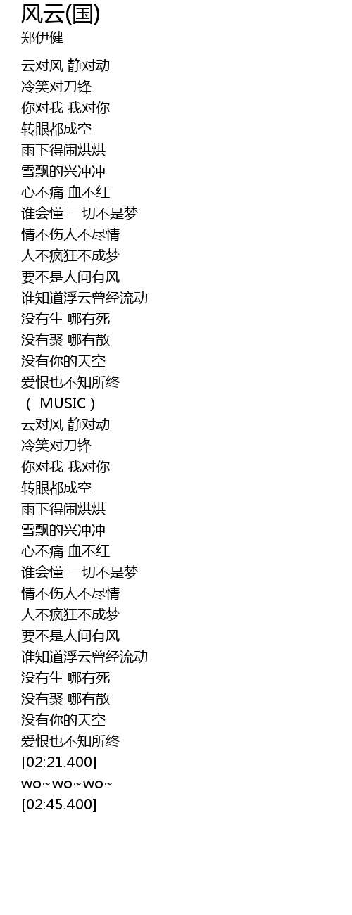 | [02:04.700] | 谁知道浮云曾经流动 |