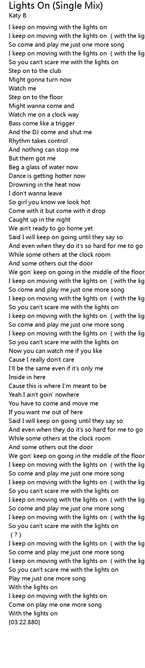 | [00:15.510] | I keep on moving with the lights on with the lights on |