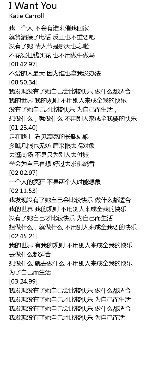 | [03:48.62] | 我发现没有了她自己才比较快乐 为自己而活 |