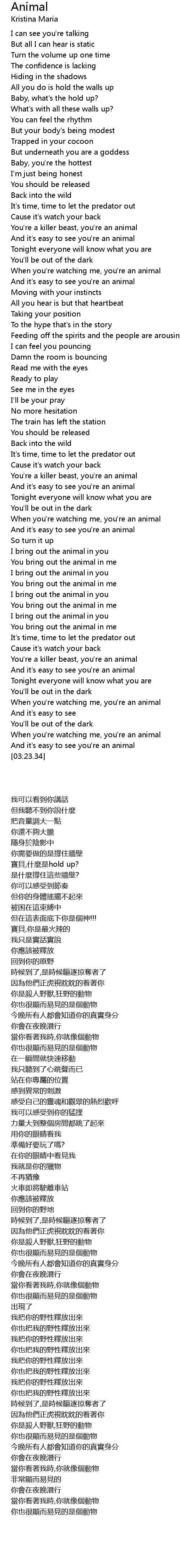 When you're watching me, you're an animal |