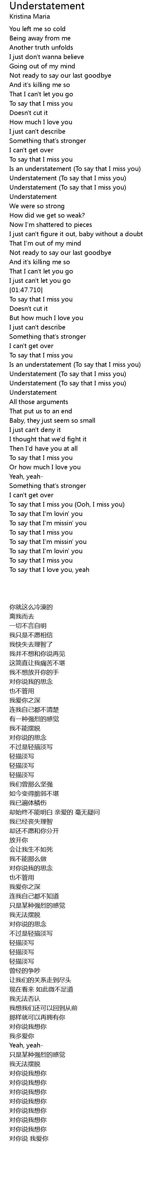 Understatement Lyrics