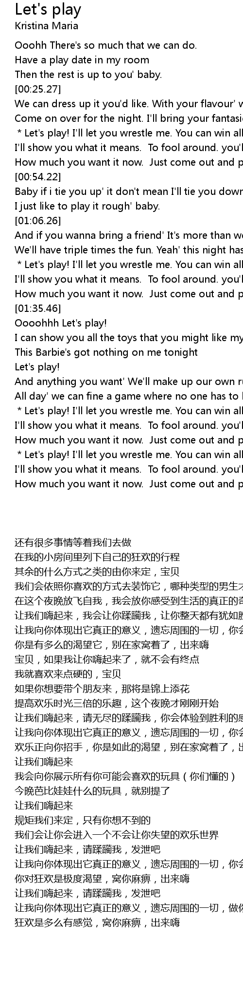 | [00:36.44] | Let' s play! I' ll let you wrestle me. You can win all day |