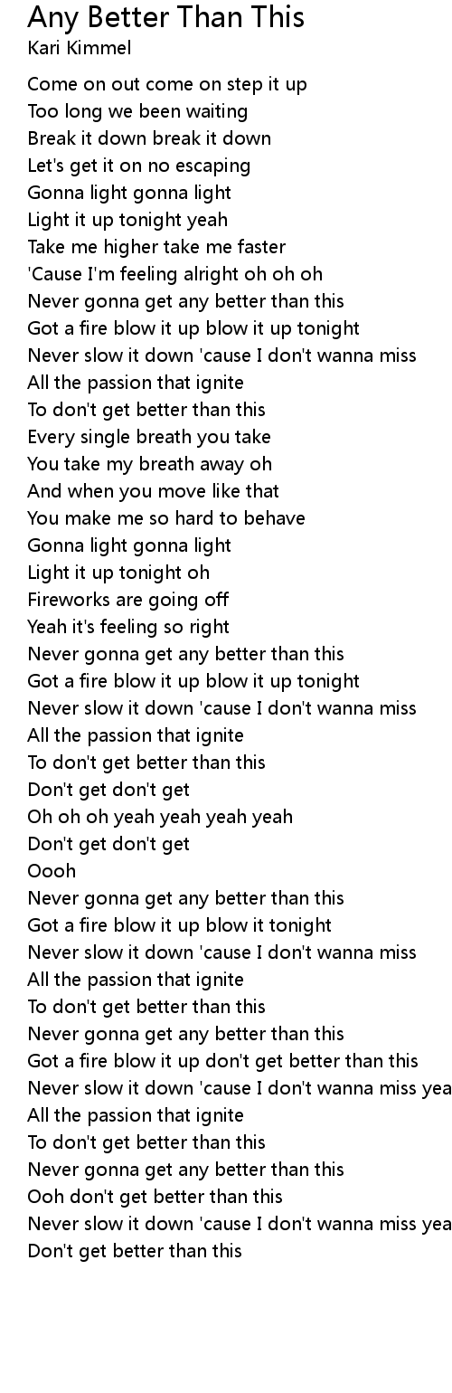 Never slow it down 'cause I don't wanna miss yeah yeah |