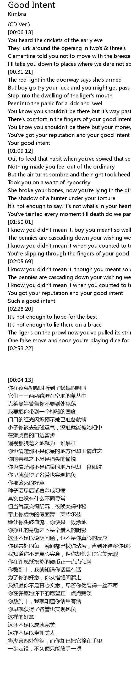 | [00:51.12] | There's comfort in the fingers of your good intent |