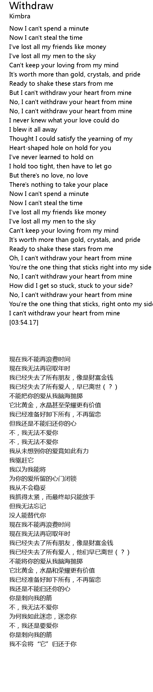 | [00:53.43] | But I can't withdraw your heart from mine |