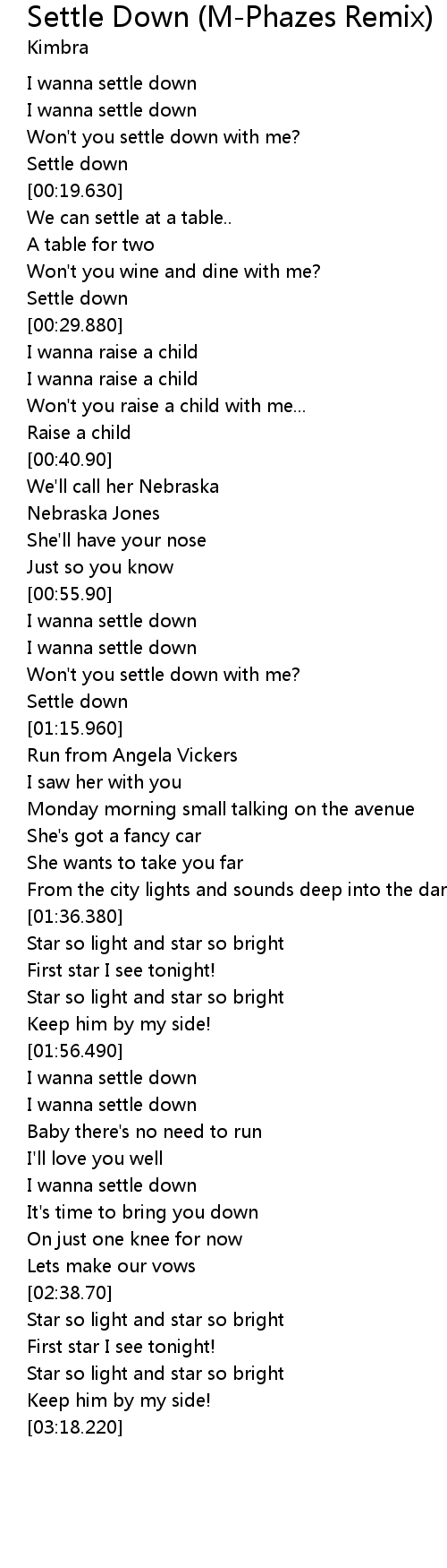 | [02:17.650] | I wanna settle down |
