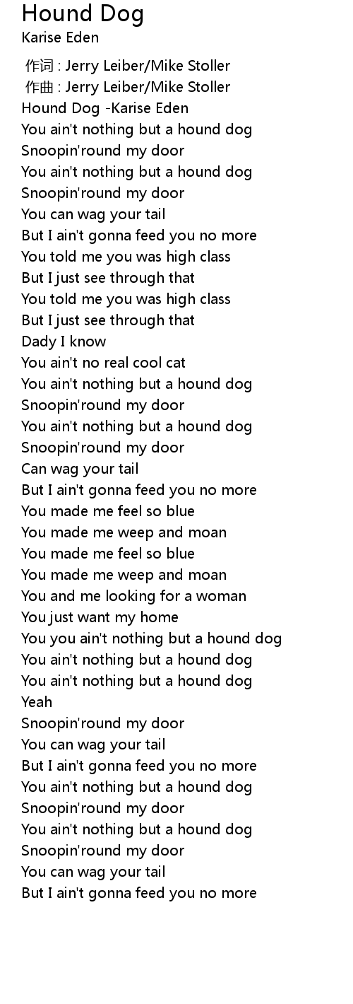 | [00:11.450] | You ain' t nothing but a hound dog |