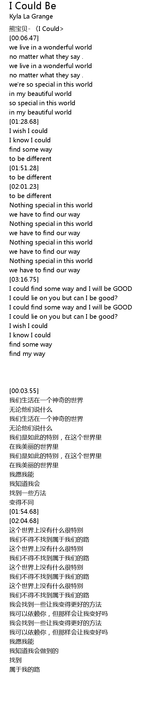 | [00:03.55] | xiong bao bei I Could |