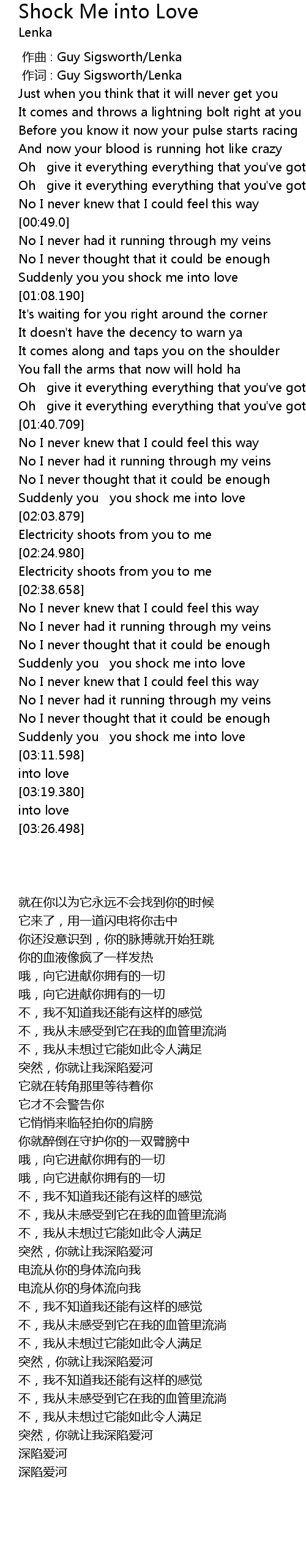 | [00:01.00] | zuò cí : Guy Sigsworth Lenka |