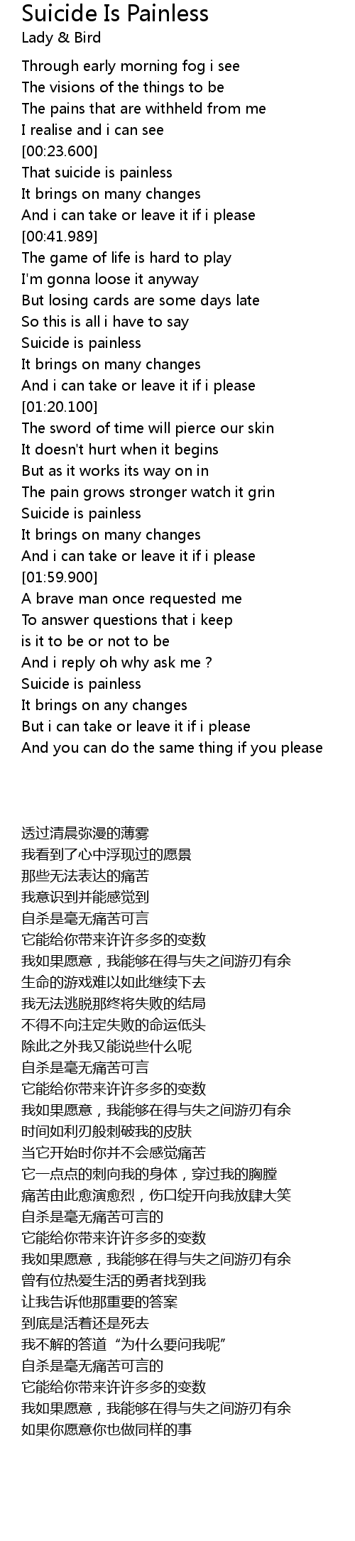 That suicide is painless |
