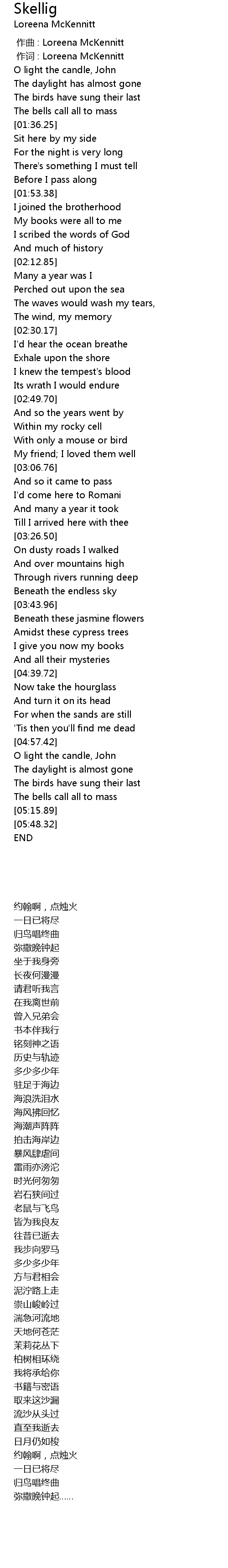 | [00:01.00] | 作词 : Loreena McKennitt |