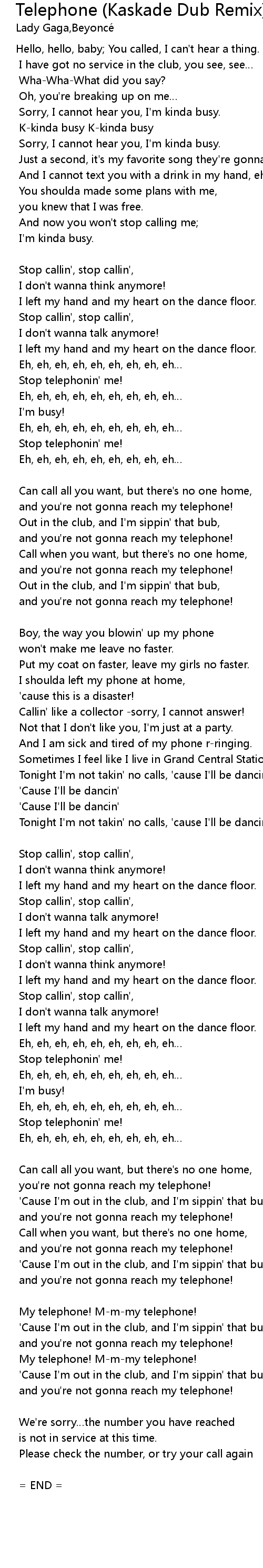 | Hello, hello, baby You called, I can' t hear a thing. | |