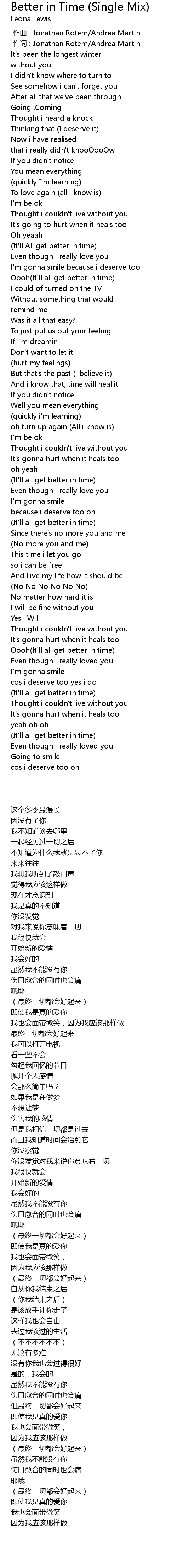 | [01:30.610] | Oooh(It'll all get better in time) |