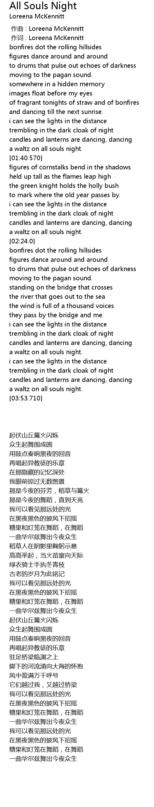 | [00:01.00] | 作词 : Loreena McKennitt |