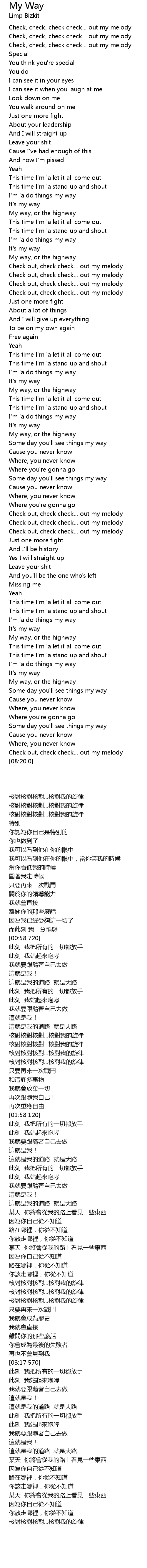 | [01:17.440] | My way, or the highway |