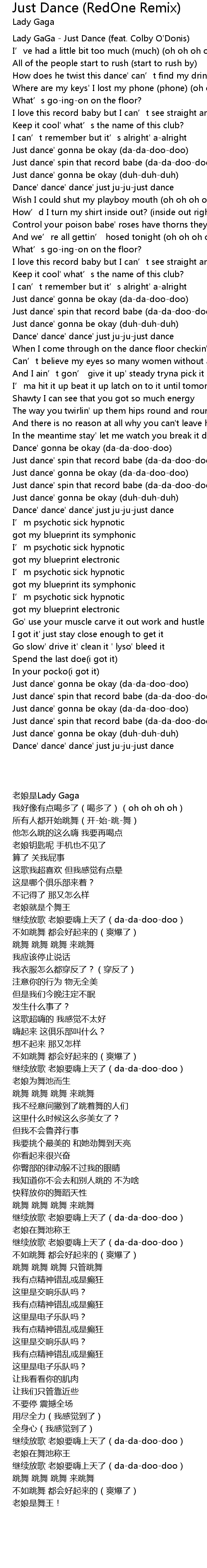 | [01:46.31] | Just dance' gonna be okay (duh-duh-duh) |