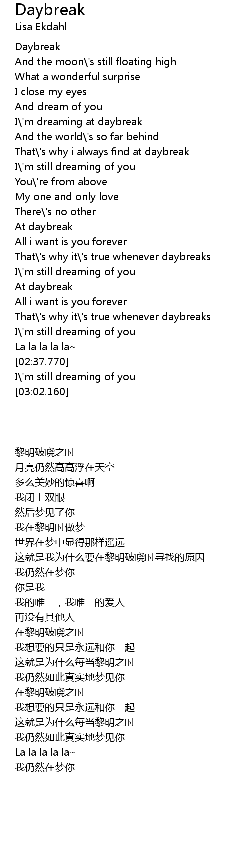 | [02:19.760] | That\'s why it\'s true whenever daybreaks |