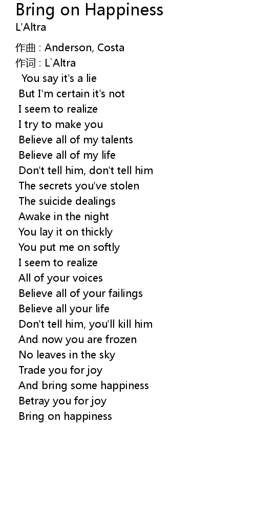 | Song | Bring on Happiness |