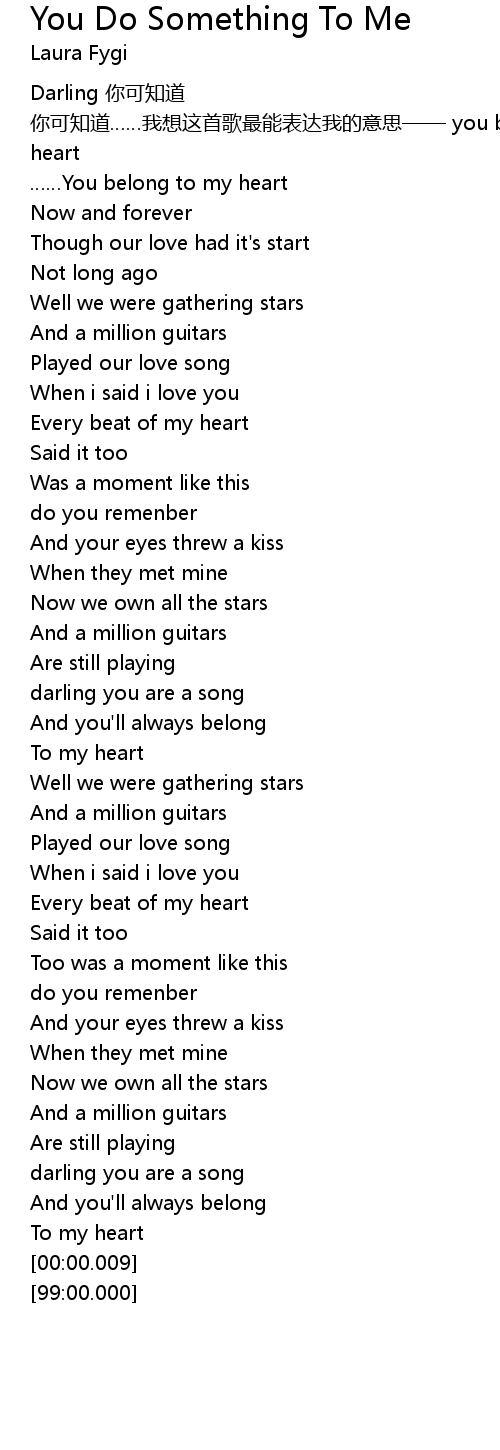 | [00:08.80] | Darling nǐ kě zhī dào nǐ kě zhī dào wǒ xiǎng zhè shǒu gē zuì néng biǎo dá wǒ de yì sī you belong to my heart |