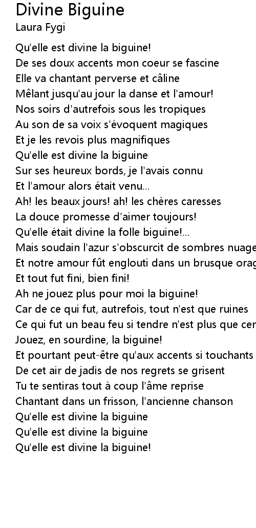 | Qu' elle est divine la biguine! |