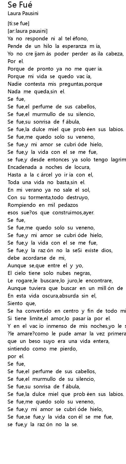 | [03:51.15] | Se fue, se fue, y la vida con e l se me fue, |