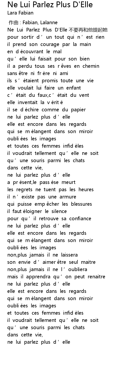 | [02:54.850] | ne lui parlez plus d ' elle |