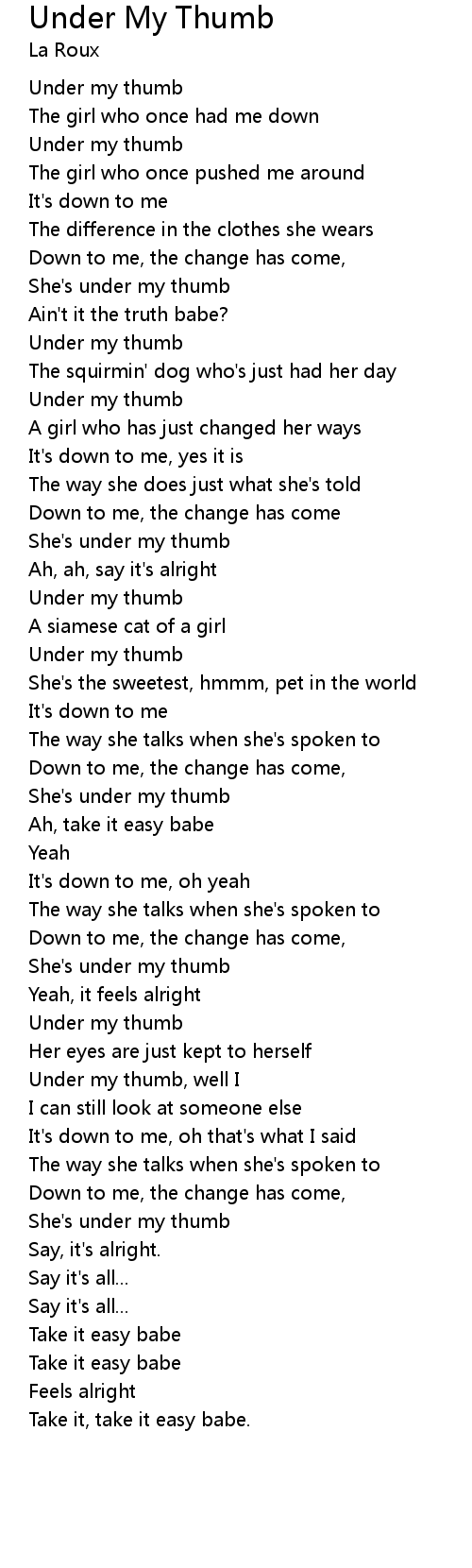 She's under my thumb |
