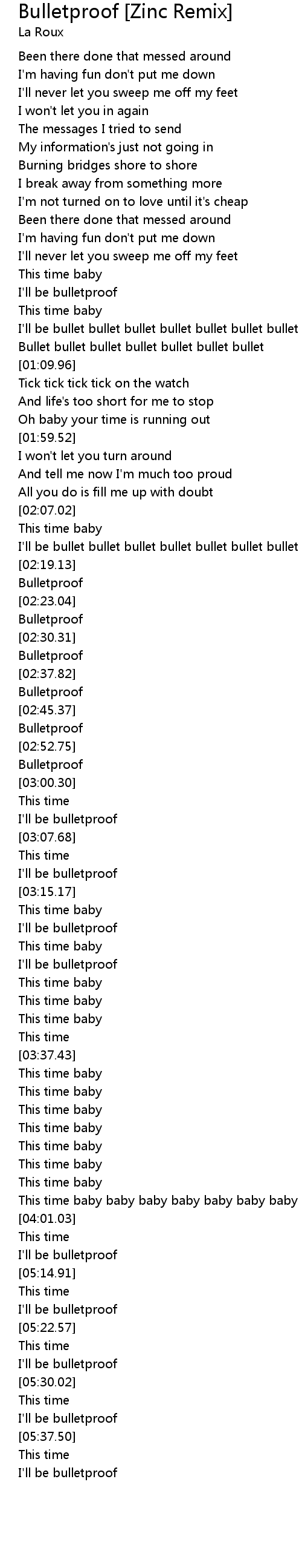 Bulletproof [Zinc Remix] Lyrics