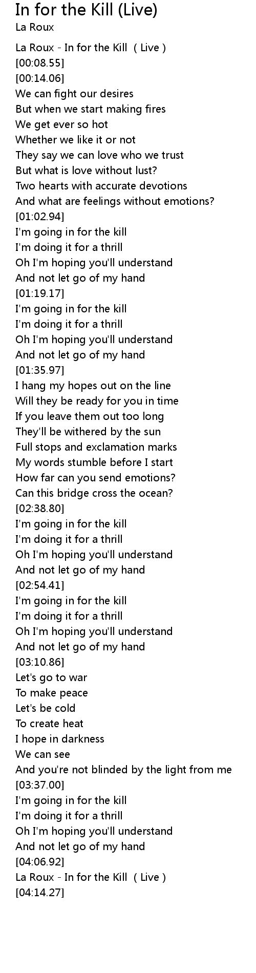 | [04:08.96] | La Roux - In for the Kill (Live) |