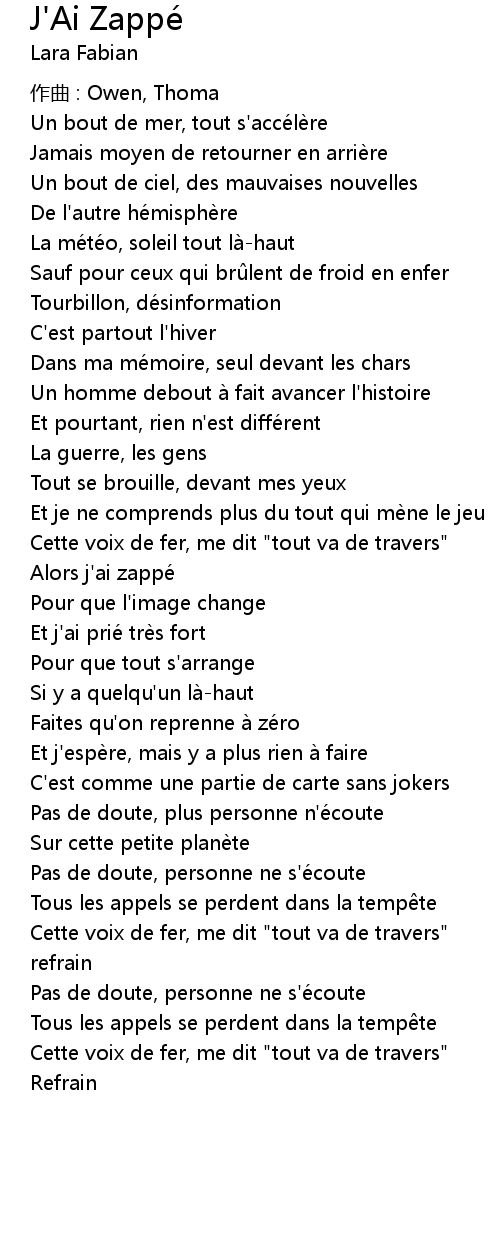 | Song | J'Ai Zappé |