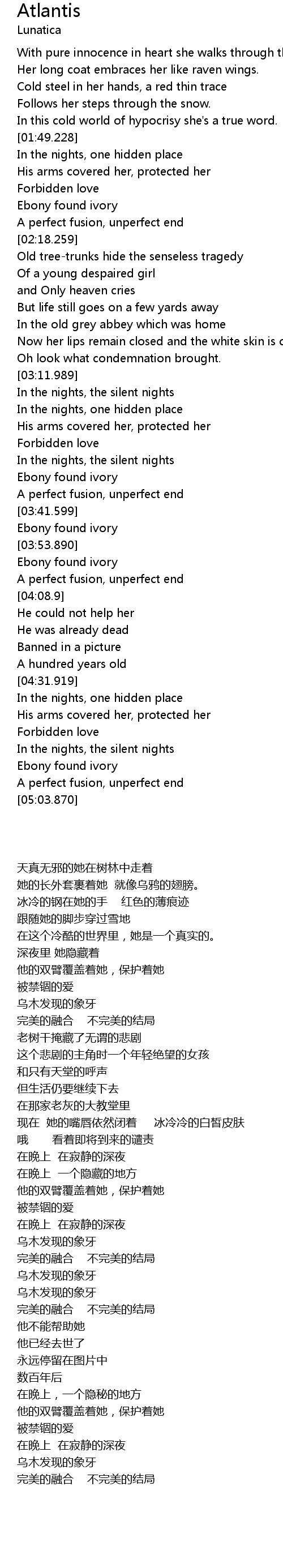 | [03:00.299] | Now her lips remain closed and the white skin is cold |