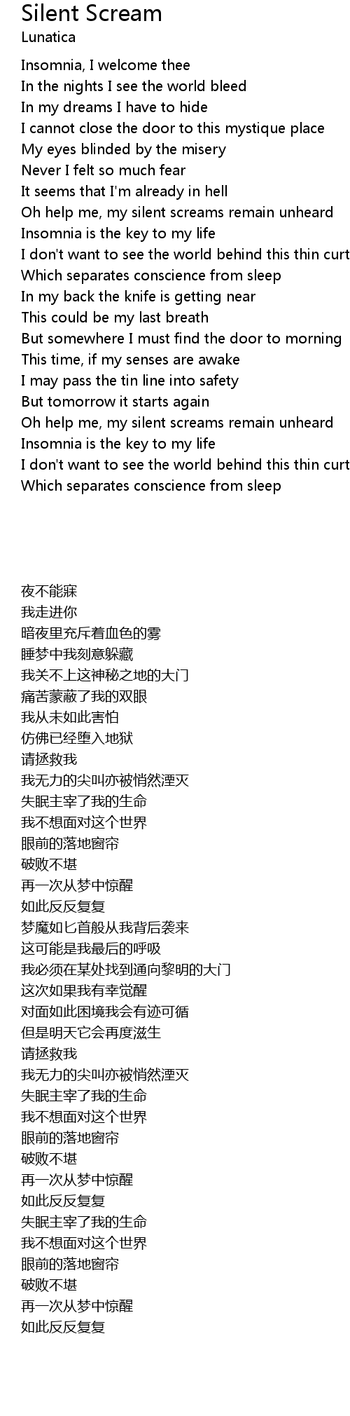 | Oh help me, my silent screams remain unheard | |
