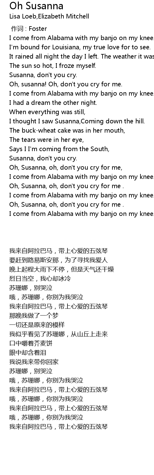 | [00:34.889] | Susanna, don't you cry. |