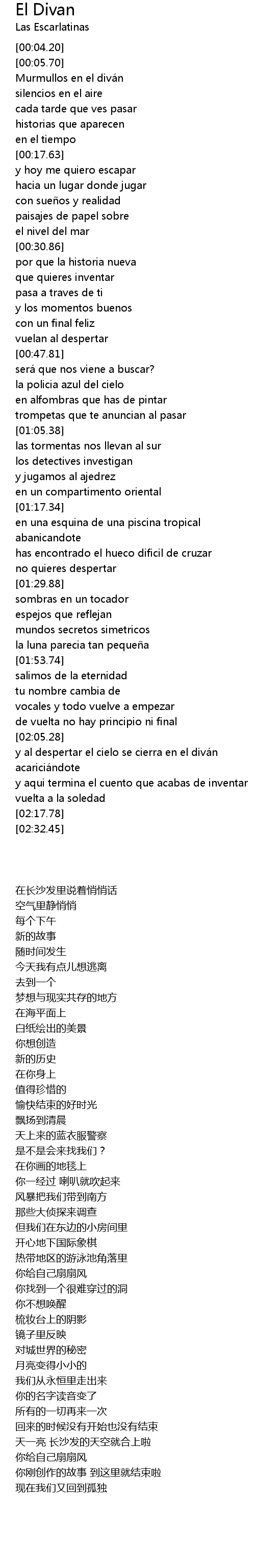 | [02:05.41] | y al despertar el cielo se cierra en el diván |