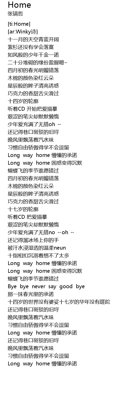 | [02:26.769] | Long way home meng dong de cheng nuo |